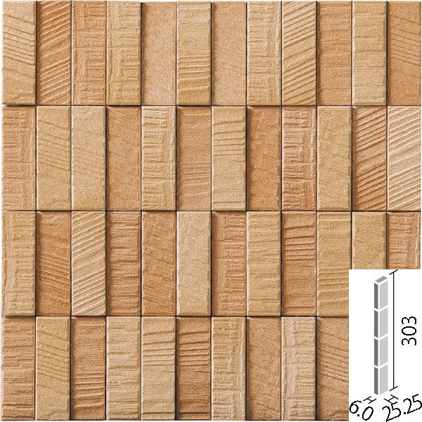 ●25×75角(納まり役物)は、同一厚さの粒をそろえることで、入隅の凹凸を軽減する役物ですが、意匠がついているため完全にフラットになるわけではありません。