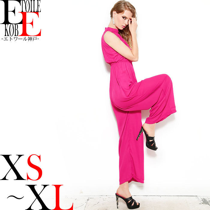 シフォンでふんわりと、そして余裕のあるワイド仕立てで仕上げられた、ロング丈のオールインワンワンピースです。ノースリーブで腕の機能性も充実。また、かなりゆとりのあるワイドパンツと股上で、ダンスなどの大きな運動にも抜群。華のあるピンク色は圧倒的な存在感を放ちます。