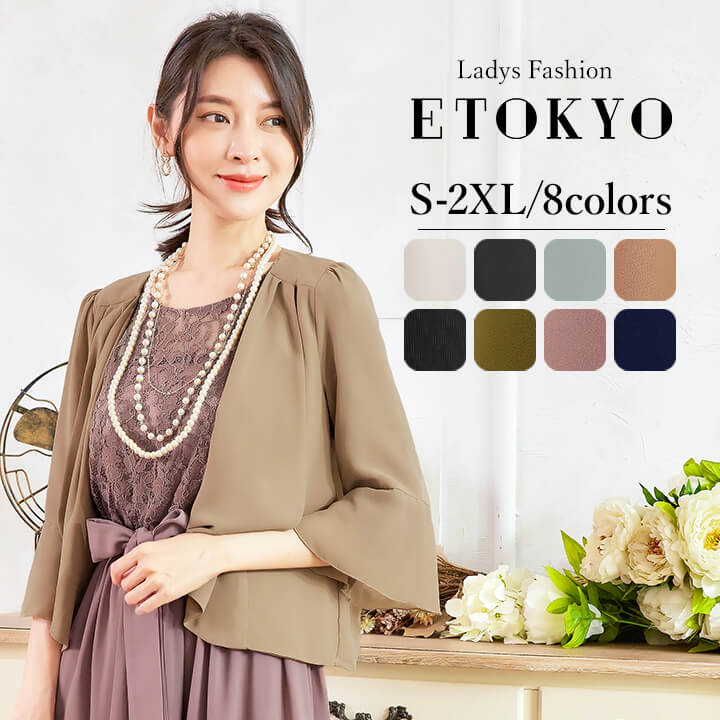 ■ドレープが優雅な七部袖ボレロ♪ ■シフォン生地の重なりが優雅さを演出します★ ■軽やかな透け感で1年を通して着用していただけます。 |