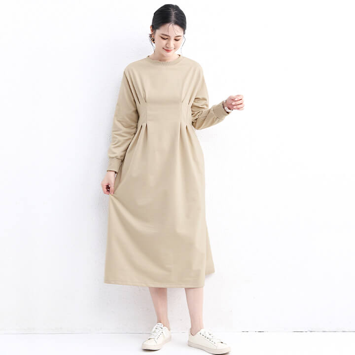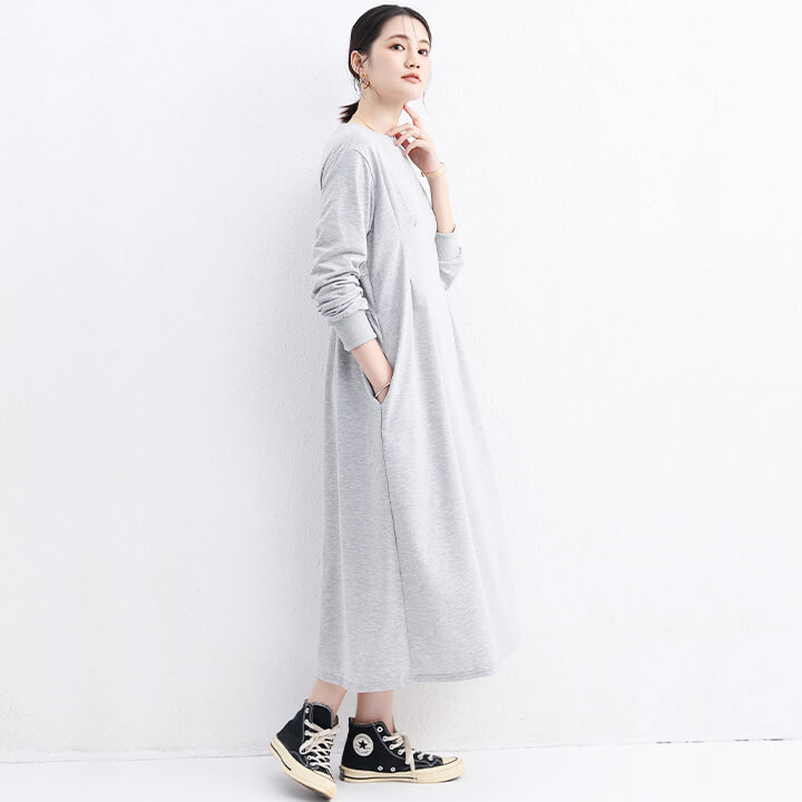| ■シンプルなのにお洒落に決まる大人のパーカワンピ。 ■ハイウエストのタックが脚長効果・ウエストシェイプ効果を発揮◎ ■リブのクルーネックでデイリー使いにピッタリなシンプルデザイン♪ ■AタイプとBタイプがございます。 | |||||||||||||||||||||||||