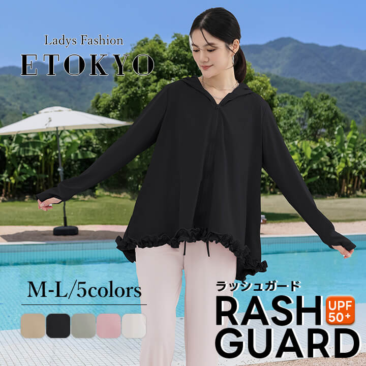 ■裾のフリルが可愛いUVラッシュパーカー。 ■速乾性でベタつかないから着心地バツグン。 ■全体に広がるうろこ柄の模様が可愛い。 ■ゆとりのあるドルマンシルエット♪ | ||||||||||||||||||||||||||||