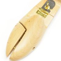 | | シュートリーはその形状が生命線です。靴の踵芯(月型)を広げてしまわないよう、踵部分は丸みを持たせ程よいテンションが得られるようになっています。ネジ部分で直角以上に曲りブーツツリーとして使用できます。 |