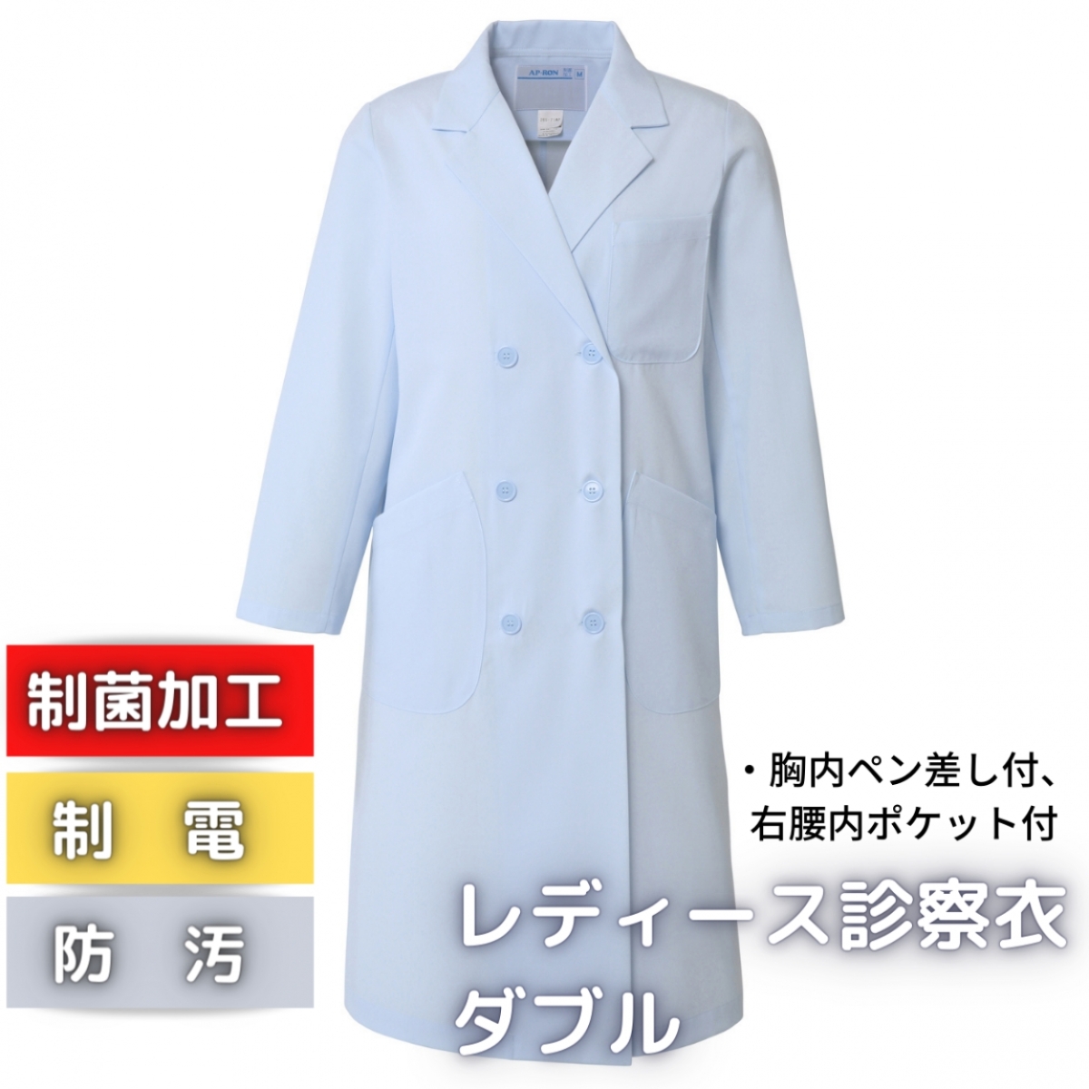 白衣 レディス診察衣 ダブル 実験衣 制菌 制電 防汚 アプロンアパレル 265-71AP