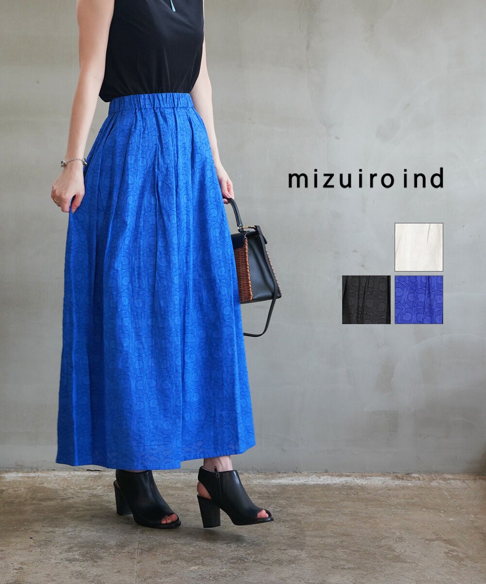 ミズイロインド ジャガード タック ロングスカート mizuiro ind レディース 国内正規品