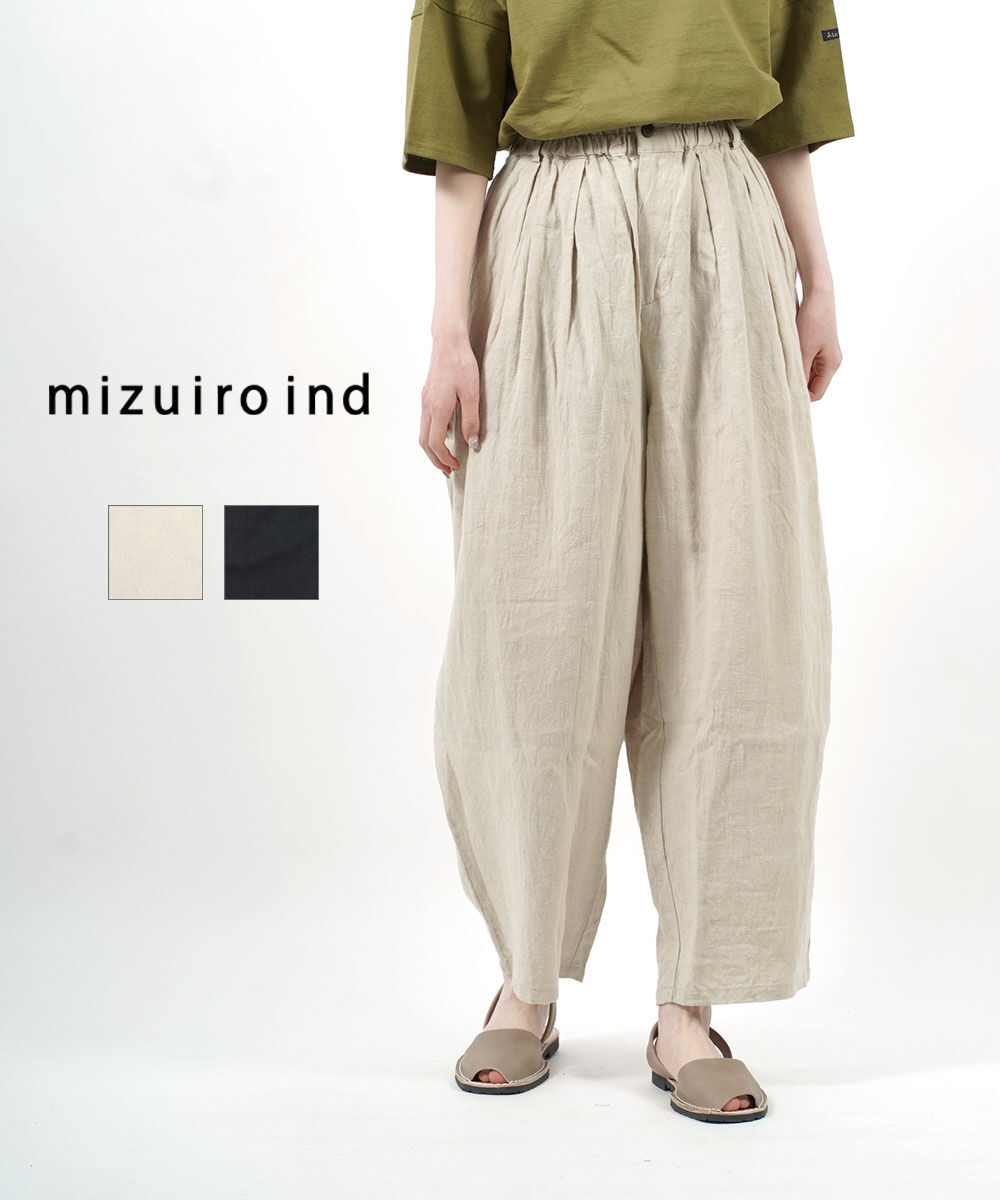 ミズイロインド タックパンツ ワイドパンツ リネンパンツ mizuiro ind レディース 国内正規品