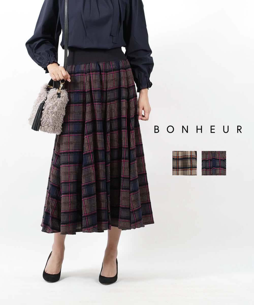 ボヌール 新柄モールチェック サーキュラースカート Bonheur レディース 国内正規品