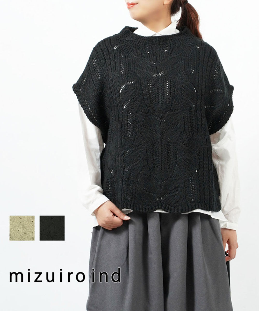 ミズイロインド ケーブルパターン ベスト ケーブル編み ニットベスト mizuiro ind レディース 国内正規品