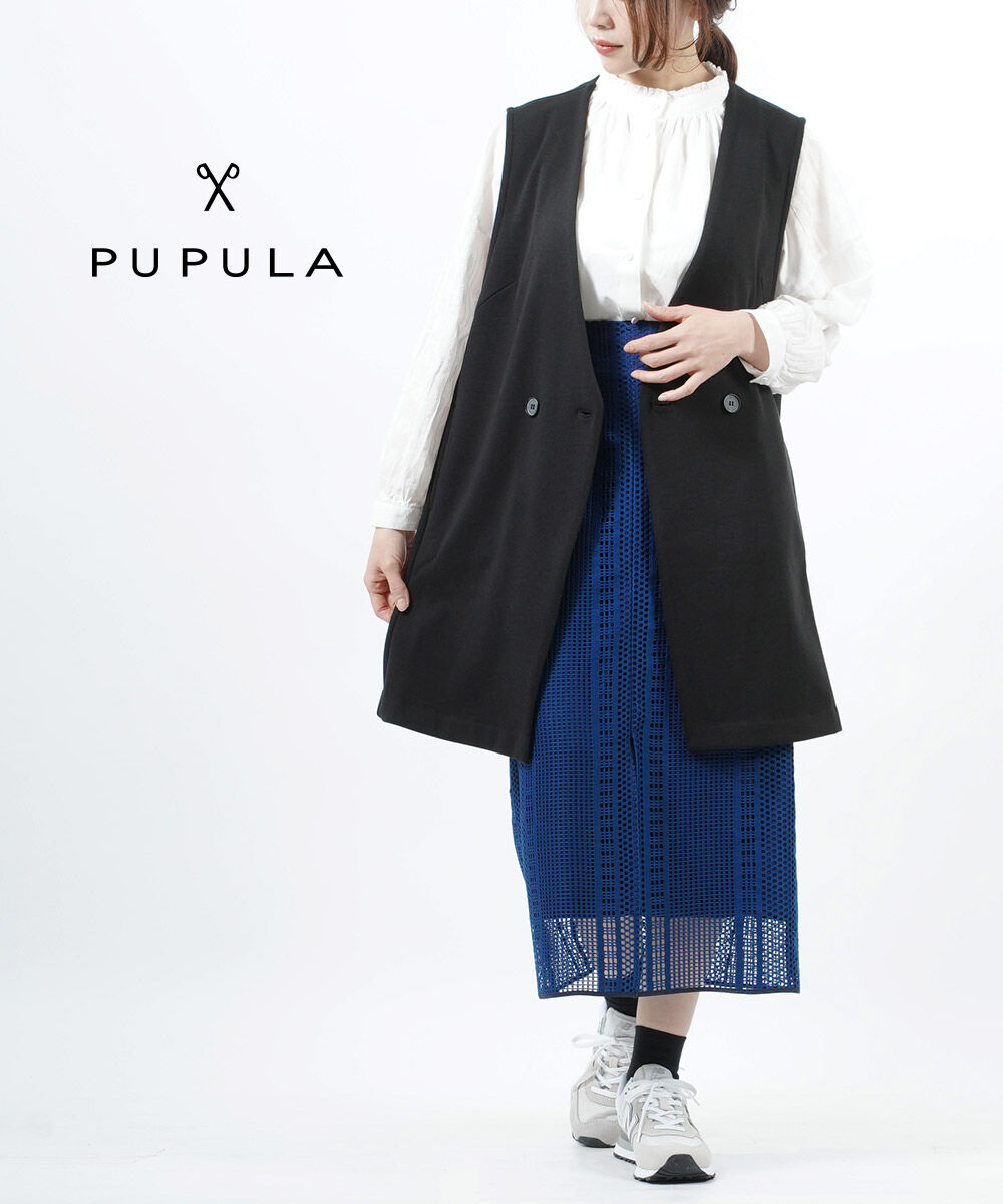 ププラ ダブルボタンベスト ロングベスト ジレ PUPULA レディース 国内正規品