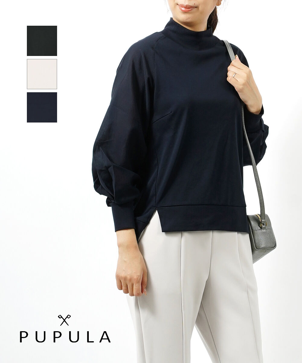 ププラ カットソー アナヤスムース×ボイル 異素材コンビ モックネック PUPULA レディース 国内正規品