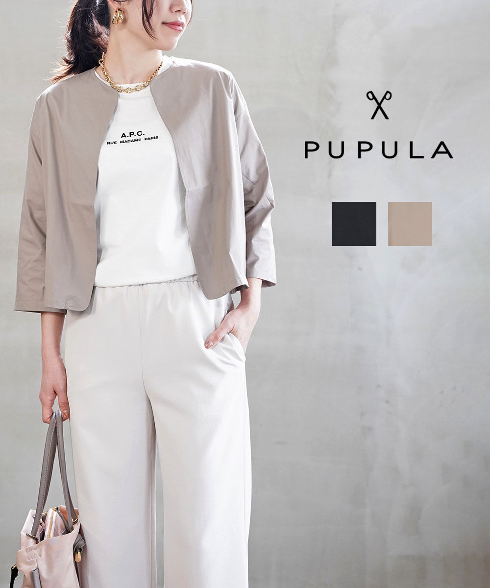 ププラ タフタ ノーカラー ショートジャケット PUPULA レディース 国内正規品