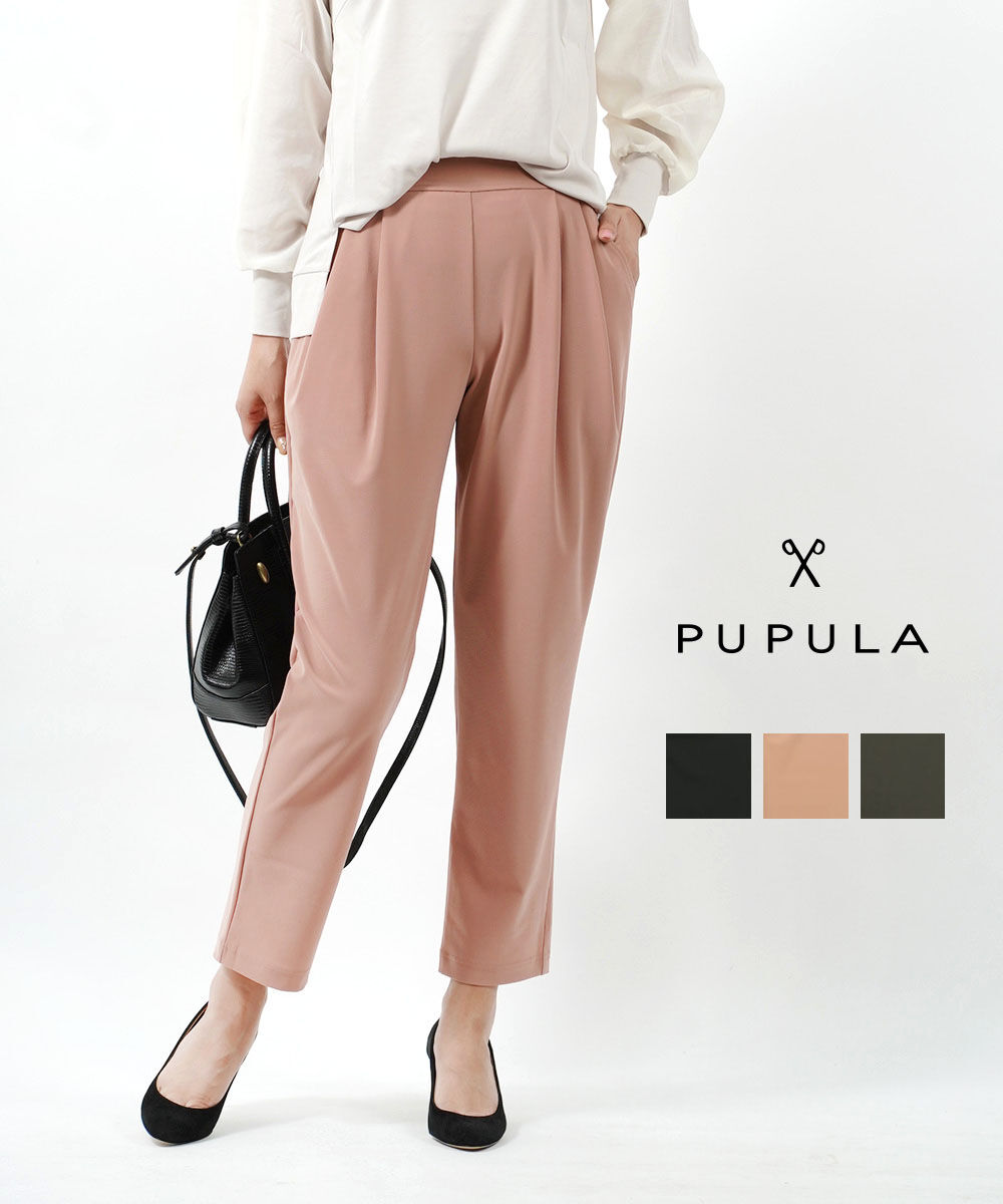 ププラ サラツイルトリコット タック テーパードパンツ PUPULA レディース 国内正規品
