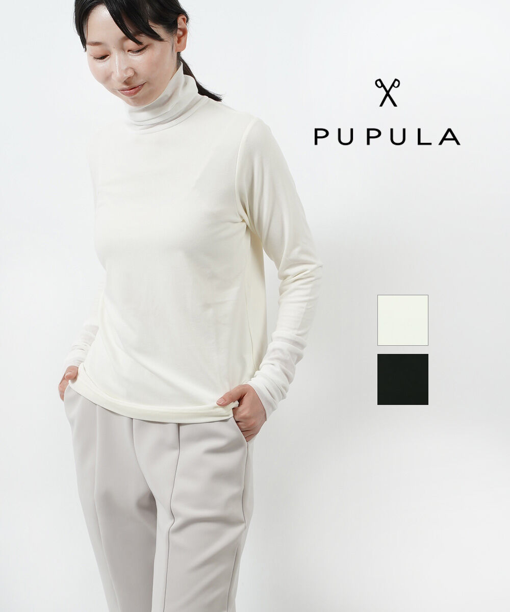 ププラ カットソー MIPストレッチスウェード×チュール 切り替え ハイネックカットソー PUPULA レディース 国内正規品