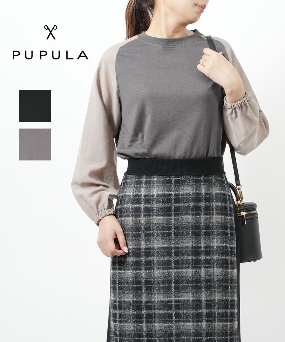 ププラ バンダリーニット×ボイルラグラン切り替えプルオーバー PUPULA レディース 国内正規品