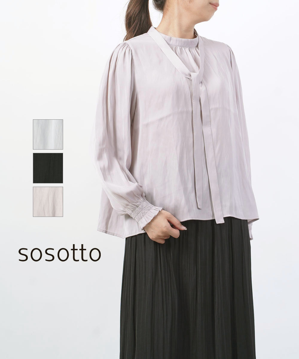 ソソット アンティークサテン ボウタイ付き ギャザープルオーバーブラウス sosotto レディース 国内正規品