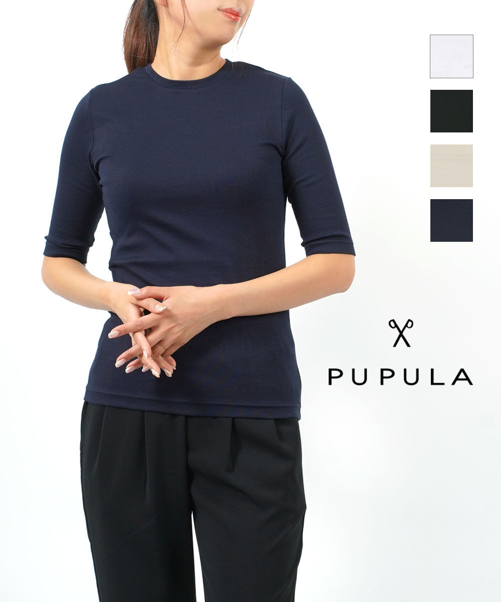 ププラ デジタルリブ 5分袖 リブTシャツ PUPULA レディース 国内正規品