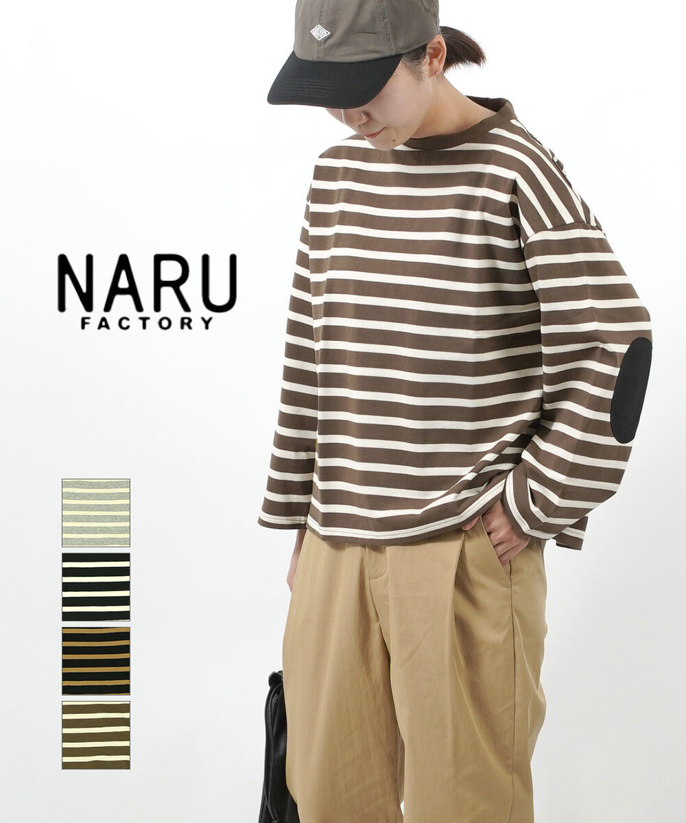 カットソー 長袖 ボーダー トップス クルーネック エルボーパッチ コットン 天竺 綿 日本製 ナチュラル かわいい ゆったりめ ビッグシルエット