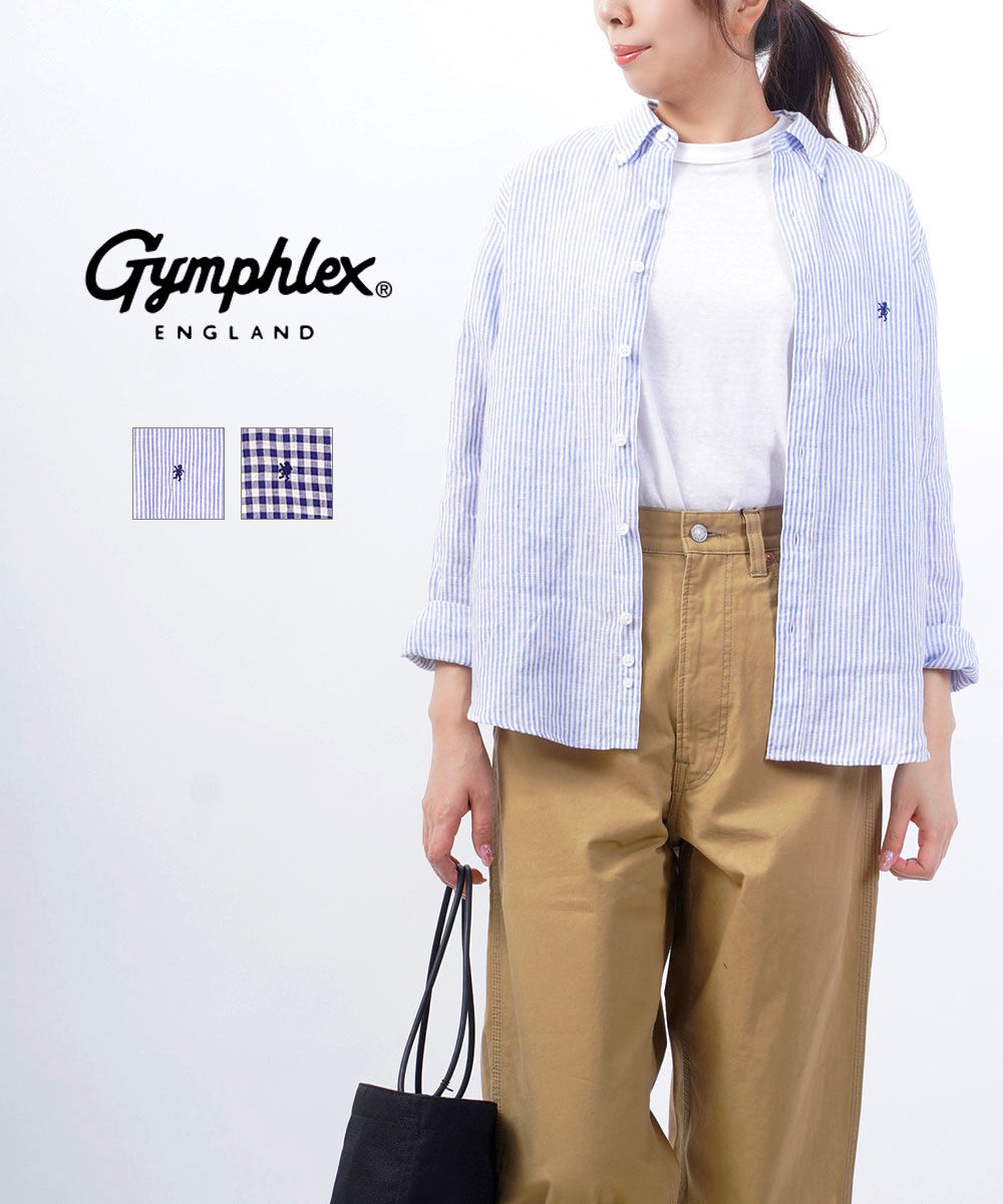 ジムフレックス リネン ボタンダウンシャツ ストライプ チェック Gymphlex レディース 国内正規品
