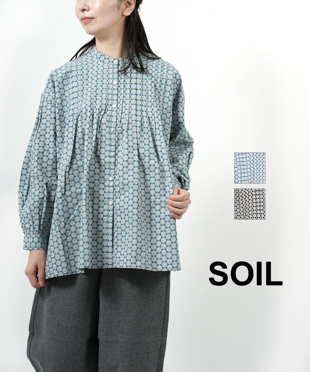ソイル ピンタックシャツ 60'S POPLIN FLOWER PRINT BANDED COLLAR PINTUCK SHIRT SOIL レディース 国内正規品