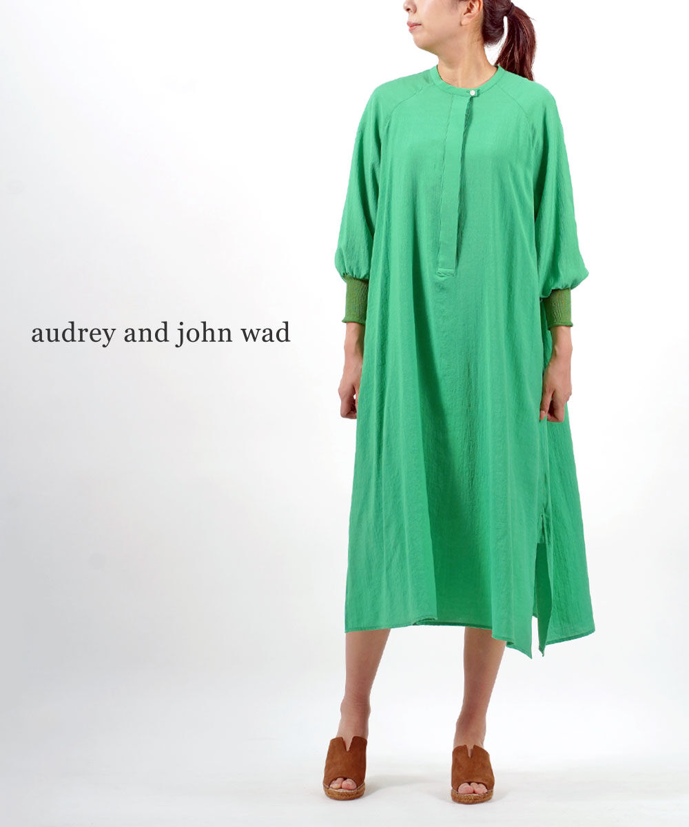 オードリーアンドジョンワッド シアー リブ付 バンドカラー スリットワンピース audrey and john wad レディース 国内正規品