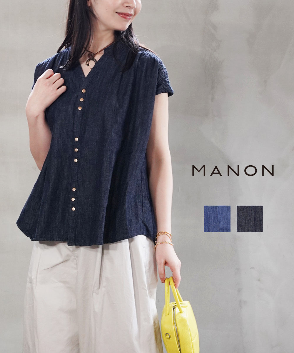 マノン DENIM V-NECK SHIRING SHIRT MANON レディース 国内正規品