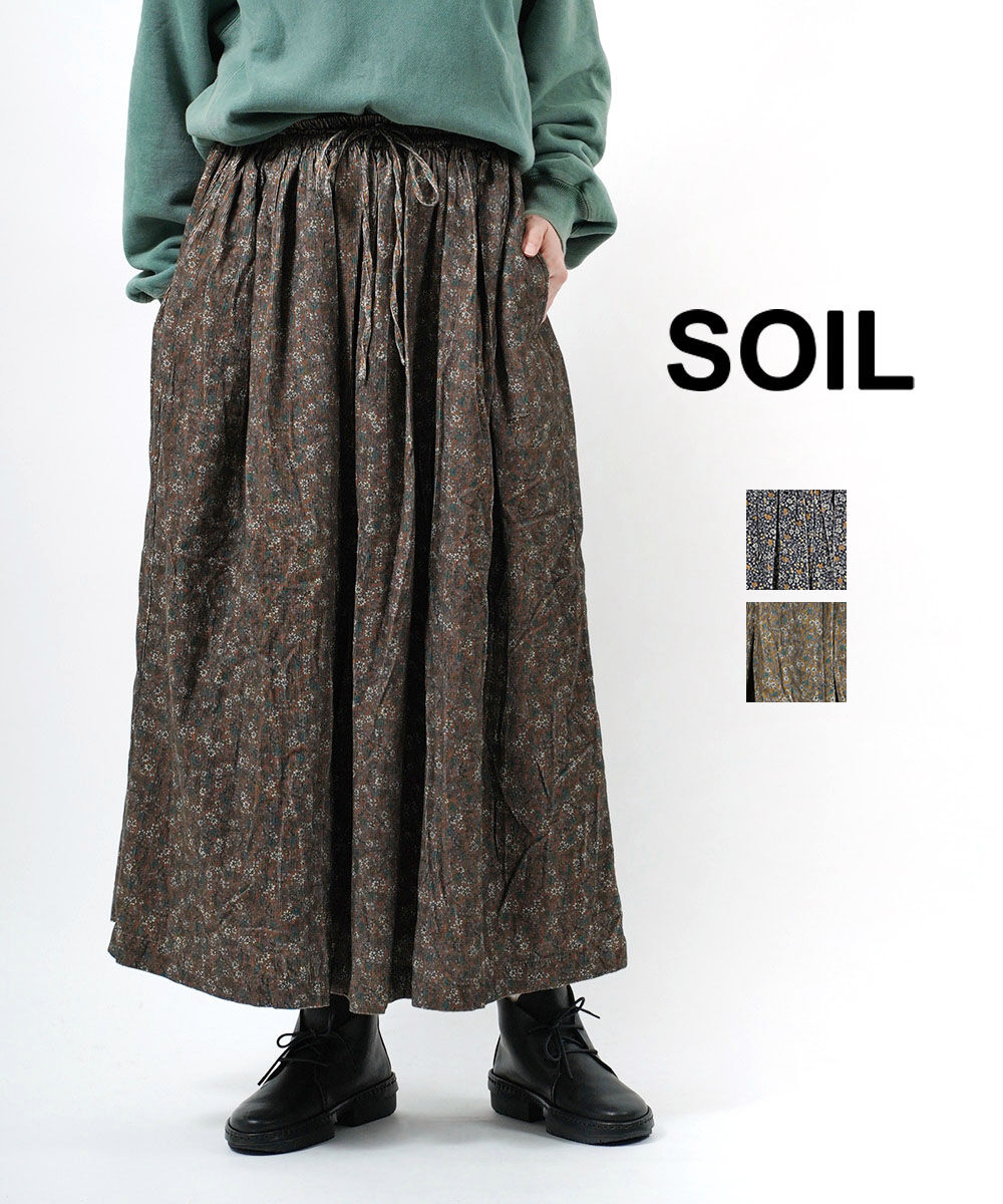 ソイル スカート CORDUROY SMALL FLOWER PRINT GATHERED SKIRT SOIL レディース 国内正規品