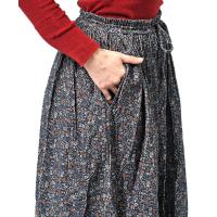スカート ロングスカート ボトムス コーデュロイ ゆったり 裏地付き 小花柄 秋 冬 フラワープリント