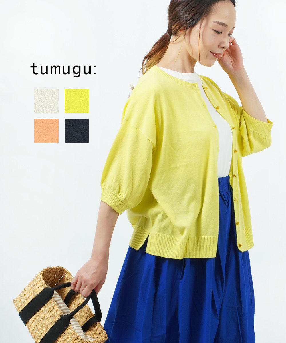 ツムグ シンプル ナチュラル ゆったり 綿100% ランダムリブニット2WAYカーディガン tumugu レディース 国内正規品