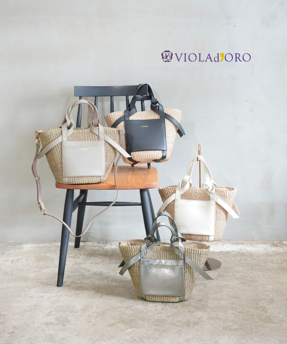 ヴィオラドーロ MIRO アバカ製 2WAY レザーポケットトート Mサイズ VIOLAd'ORO レディース 国内正規品