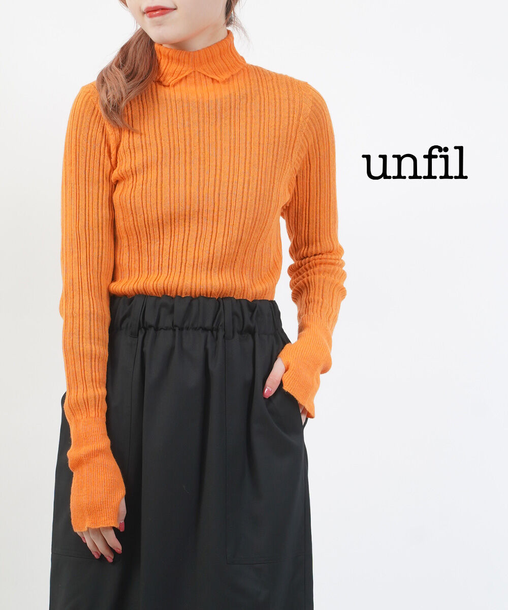ニット セーター ハイネック タートルネック リブニット ランダムリブ アルパカウール 長袖 薄手 指穴 フィンガーホール付き おしゃれ