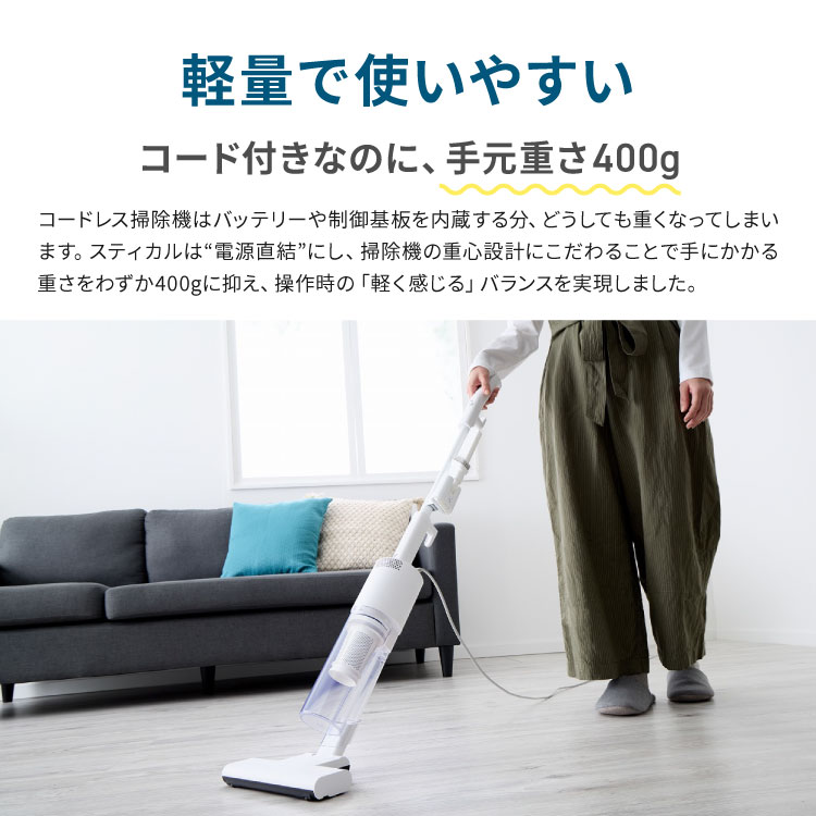 スティック掃除機 SANKA SSC-5000WH [サイクロンスティック型クリーナー スティカル コード式 ハイパワー 軽量 2WAY]