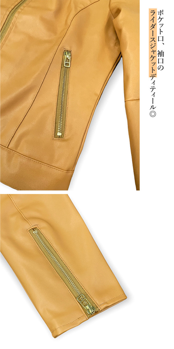 流行に左右されず長年使える名品レザージャケットでキャラ変!女性らしさをキープしつつ、ハードなテイストを匂わせてくれるキャメル色のレザージャケットです。
