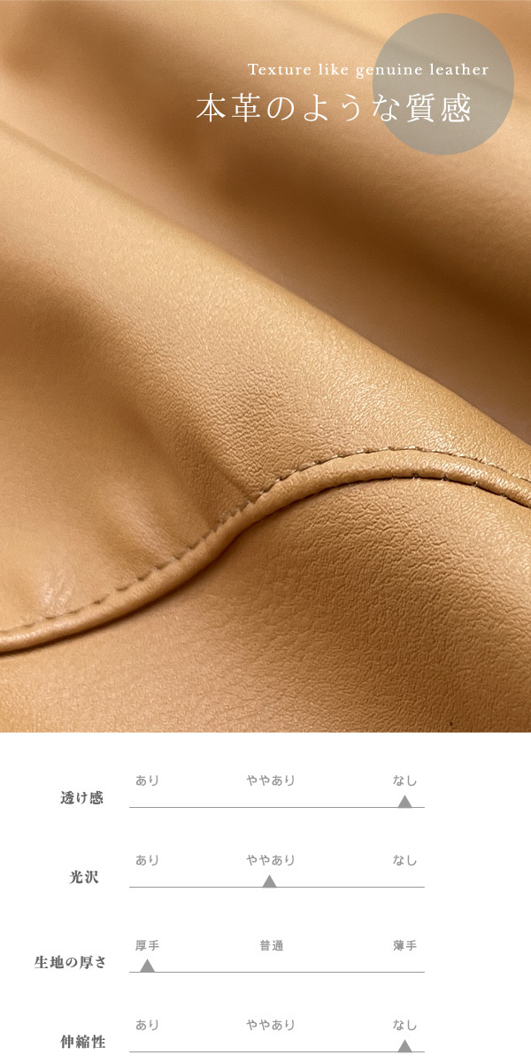 中肉でハリもあり、合皮ながらも本革のようなしっかりした質感があります。
