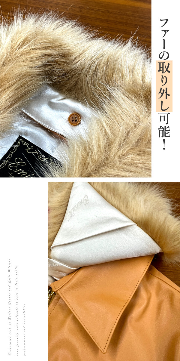 硬質なレザーに、ふんわりファー襟を掛け合わせて甘辛ミックス。