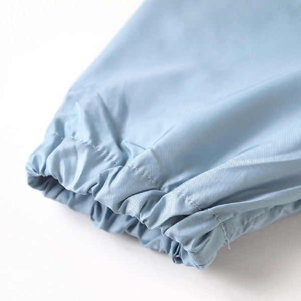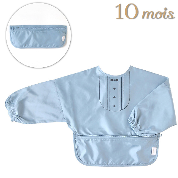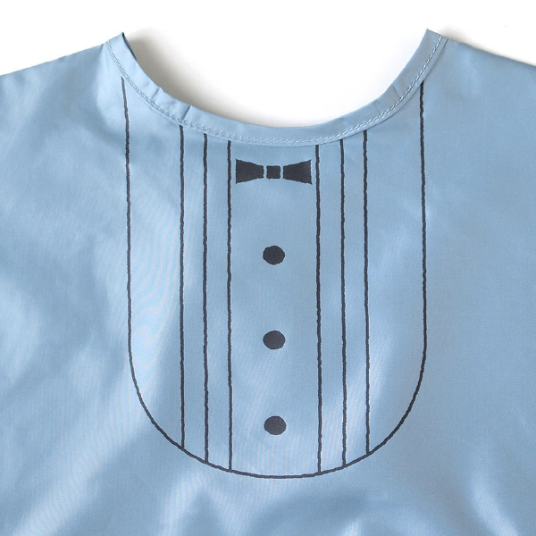 撥水加工を施しており、長袖タイプなので腕もしっかりとカバーし、 ポケットになる部分はワイヤー入りのため、食べこぼしをしっかりとキャッチします!