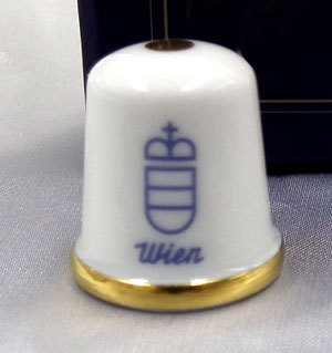 ウィーン、アウガルテンのロゴが描かれた指ぬき(シンブル)、φ約2cm、高さ約2cm、磁器製。コレクションにもお勧めです。1点限りの在庫限り特価での販売ですので、お見逃しなく!