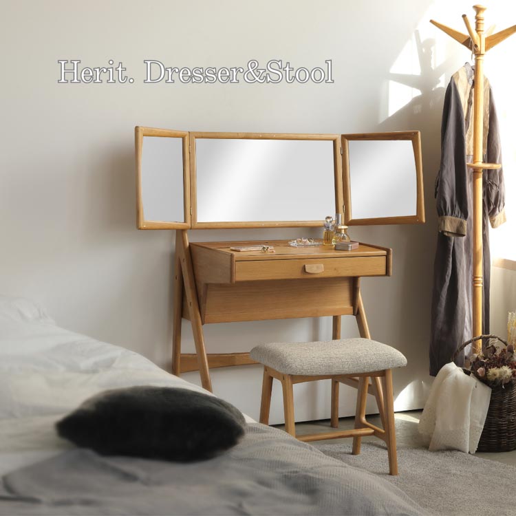 ドレッサー&スツール Herit. Dresser&Stool ドレッサー スツール ミラー 化粧台 木製家具 北欧インテリア