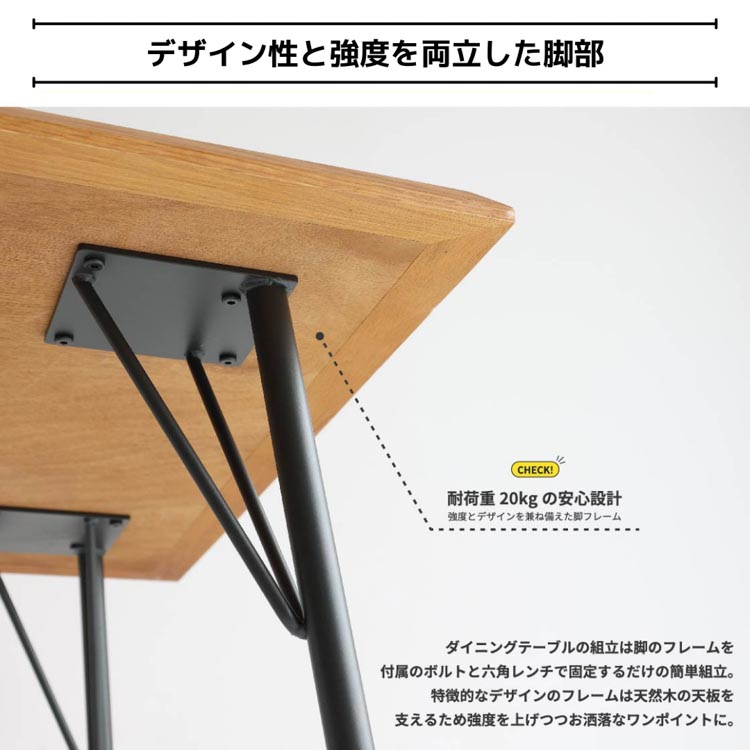 ナチュラルな木目が美しい天板は、家族や友人との食卓を快適に彩るダイニングテーブルです。