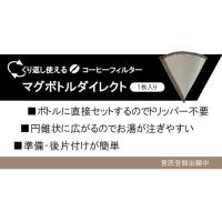 マグボトル専用コーヒーフィルターです。ボトルにセットしてお好みのコーヒー豆を入れたら準備完了。円錐状に広がるのでお湯が注ぎやすく、忙しい朝でも手軽にドリップできます。マグボトルに直接セットするのでドリッパー・ペーパーフィルター不要です。洗って繰り返し使えるステンレスメッシュタイプです。口径4〜6cmのボトルにご使用できます。