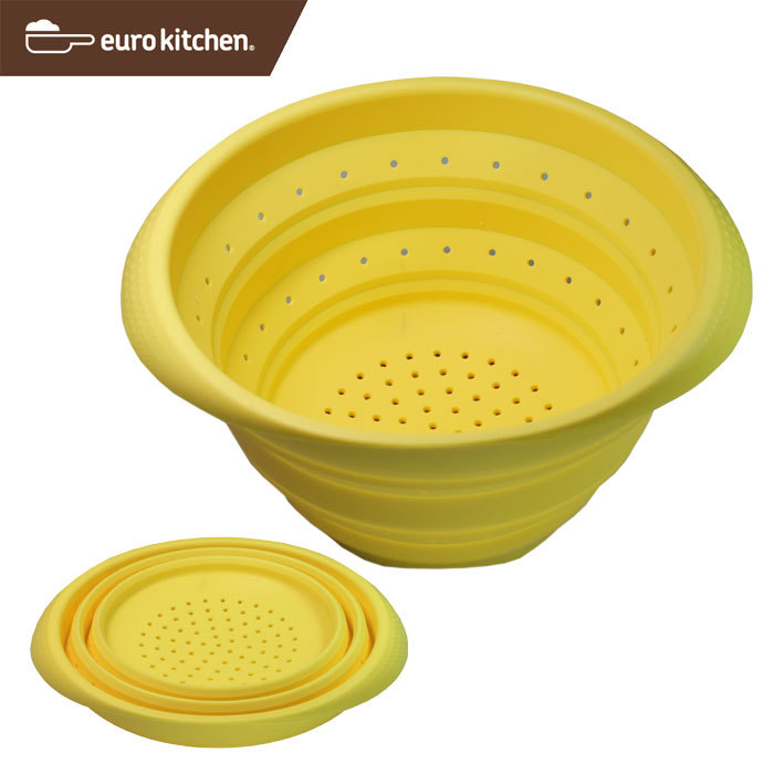 ユーロキッチン eurokitchen シリコン折りたたみ水切りボウル 水切り器 黄(イエロー) スパゲッティー スパゲッティ パスタ コランダー