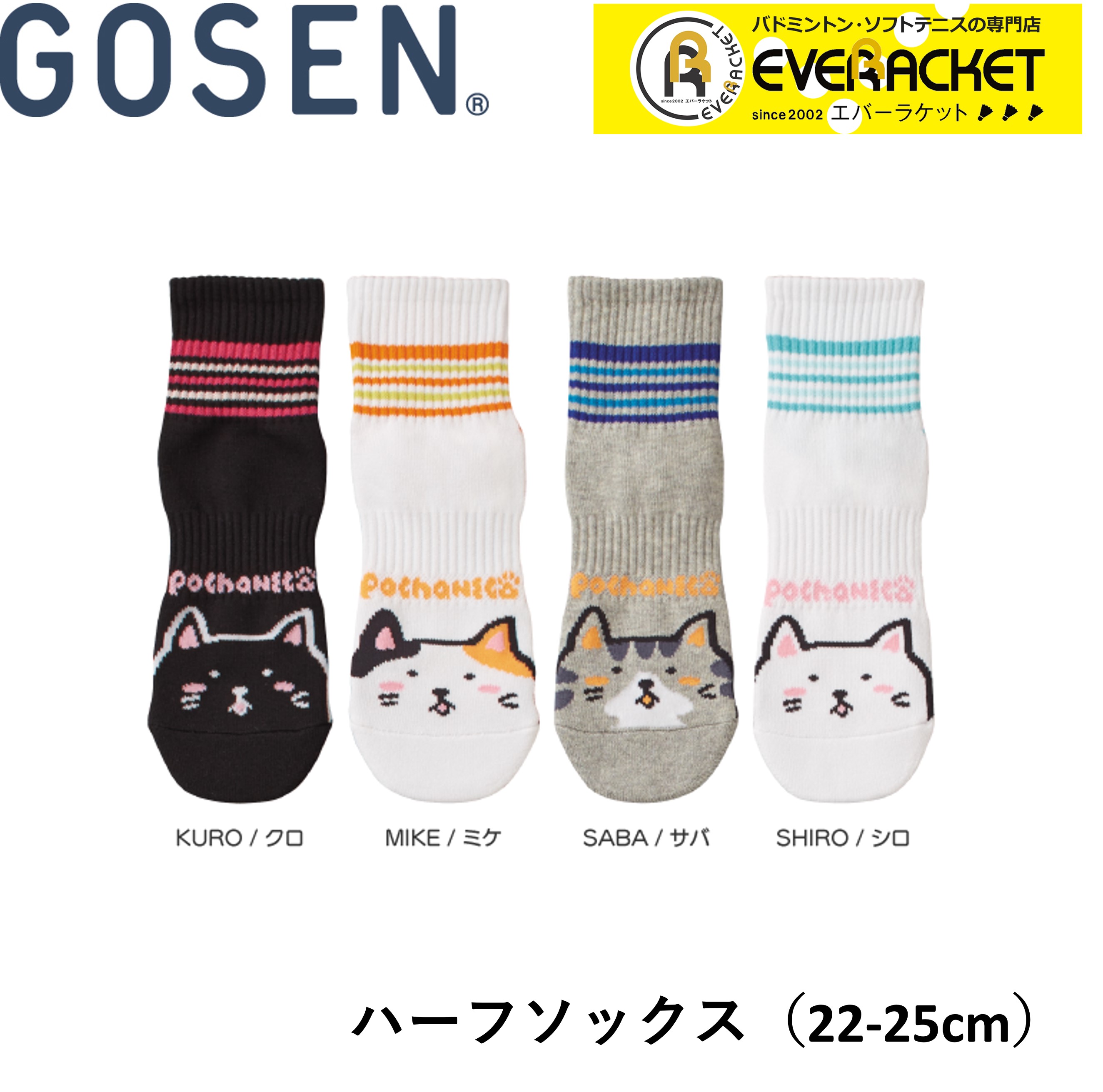 【最短出荷】【LINE追加で5%OFFクーポン配布中】ゴーセン GOSEN ソックス pochaneco ハーフソックス NSH03 バドミントン ソフトテニス 22-25cm