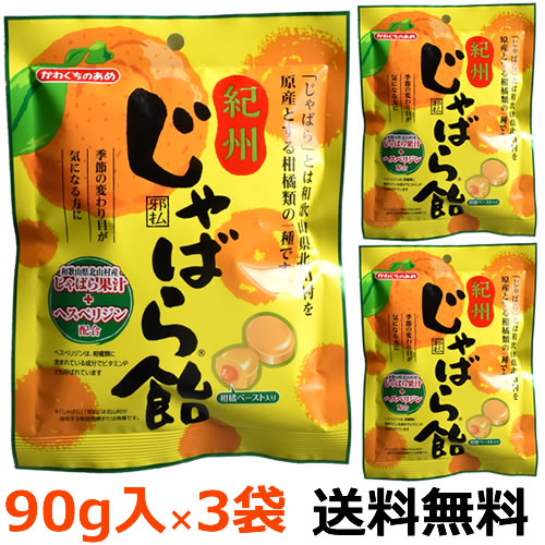 川口製菓 紀州じゃばら飴 90g入×3袋 (送料無料)(ポストB)邪払 柑橘ペースト入り 和歌山北山村 季節の変わり目 花粉症 かわぐちのあめ 幻の果実