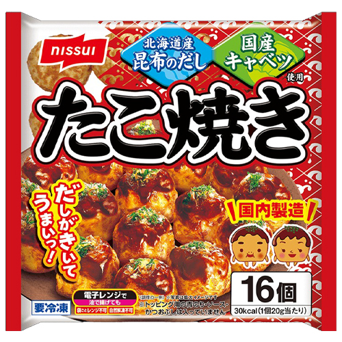 ニッスイ たこ焼き 16個(320g) × 16個 (冷凍) だしがきいてうまいっ 北海道産昆布のだし 国産キャベツ 国内製造 (爆買)