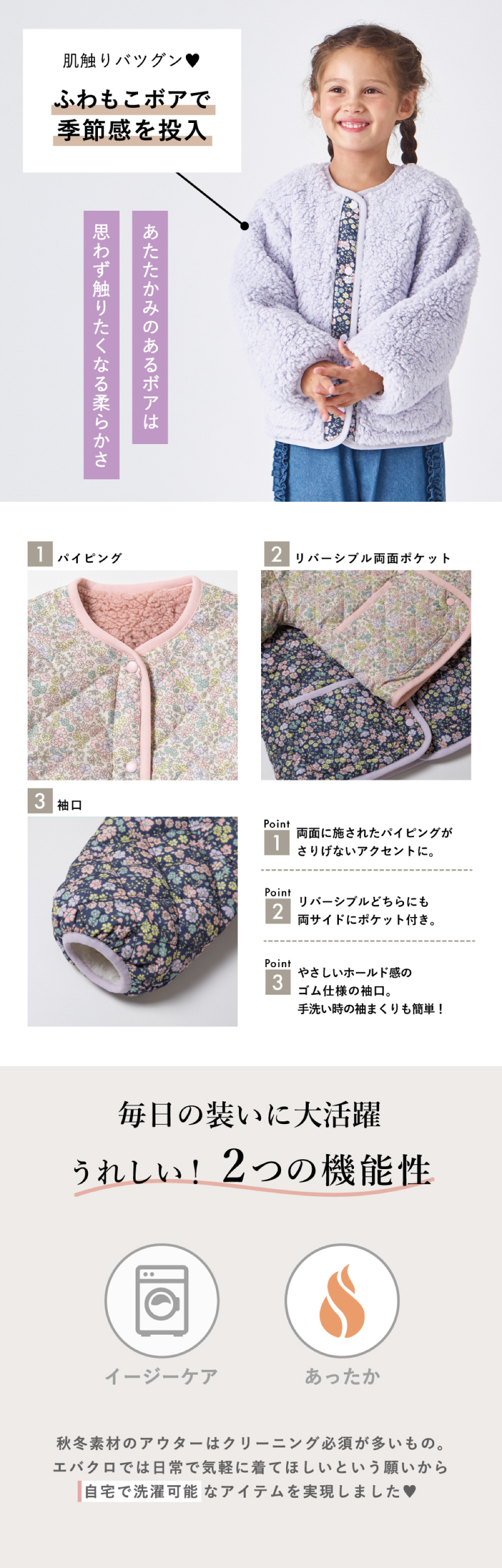 子ども服 ジャケット ベビー キッズ マタニティ ブルゾン 上着 羽織 アウター コート ボア 90 100 110 120 130 140