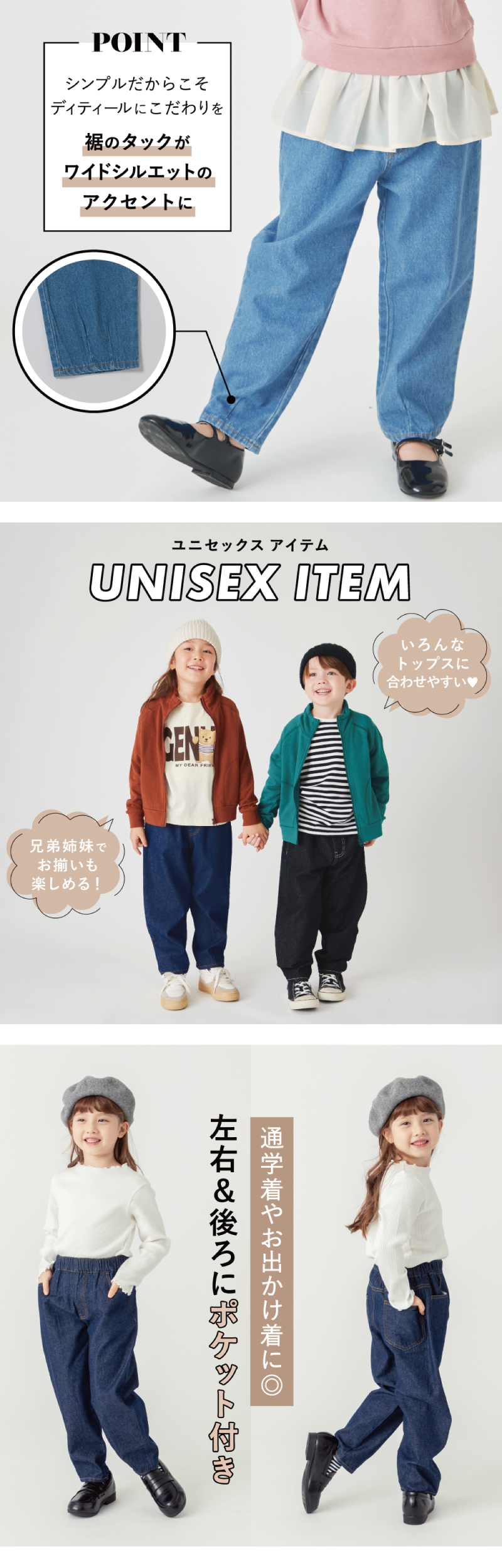 キッズ 子供 こども スクール ジュニア ベビー べびー 幼児 新生児 男の子 男児 ボーイズ 女の子 女児 ガールズ 服 ふく 幼稚園児 保育園児 小学校 小学生 90cm 100cm 110cm 120cm 130cm 140cm 青 紺 黒 ブルー ネイビー ブラック 春 春用 春物 春服 夏 夏用 夏物 夏服 春夏物 SS 26SS 通園通学 入園入学 セット 誕生日プレゼント 普段使い お出かけ 遠足 帰省 修学旅行 school 綿100% コットン デニム でにむ ボトムス ボトム ズボン 長ズボン ロングパンツ 10分丈 十分丈 パンツ デニム デニムパンツ ジーンズ ジーパン ポケット ポケット付き ビッグシルエット おしゃれ お洒落 オシャレ かわいい 可愛い カワイイ かっこいい カッコいい カッコイイ カジュアル プチプラ ぷちぷら ゆったり お揃い 友達 友だち 無地