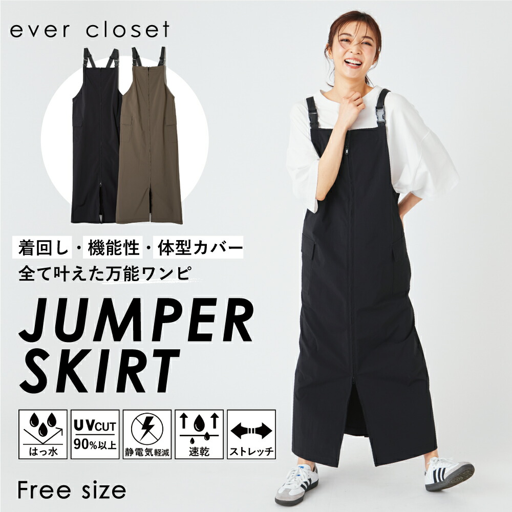 ワンピース ロングワンピ ロングワンピース スカート ストレッチスカート ロングスカート ロング ジャンスカ ジャンパースカート 体型 体形 体型カバー 体形カバー イージーケア 洗える 洗濯できる 洗濯 洗濯可能 洗濯可 ウォッシャブル ストレッチ 速乾 静電気防止 ダブルジップ uvカット uv対策 uv 紫外線対策 日焼け防止 日焼け対策 おしゃれ お洒落 オシャレ かわいい 可愛い カワイイ スタンダード ベーシック プチプラ ぷちぷら 無地 高見え 華奢見え 細見え きれい見え キレイめ 大人 オトナ お揃い おそろい おそろコーデ おそろいコーデ 親子コーデ 楽ちん 楽チン らくちん シンプル 無地 涼しい 梅雨 梅雨時期 雨 雨の日 ワンマイル ワンマイルコーデ ポケット付き 春夏 24SS 黒 ブラック カーキ レディース 婦人服 20代 30代 40代 ママ フリーサイズ free フリー evercloset ever closet エバークローゼット エバクロ えばーくろーぜっと えばくろ