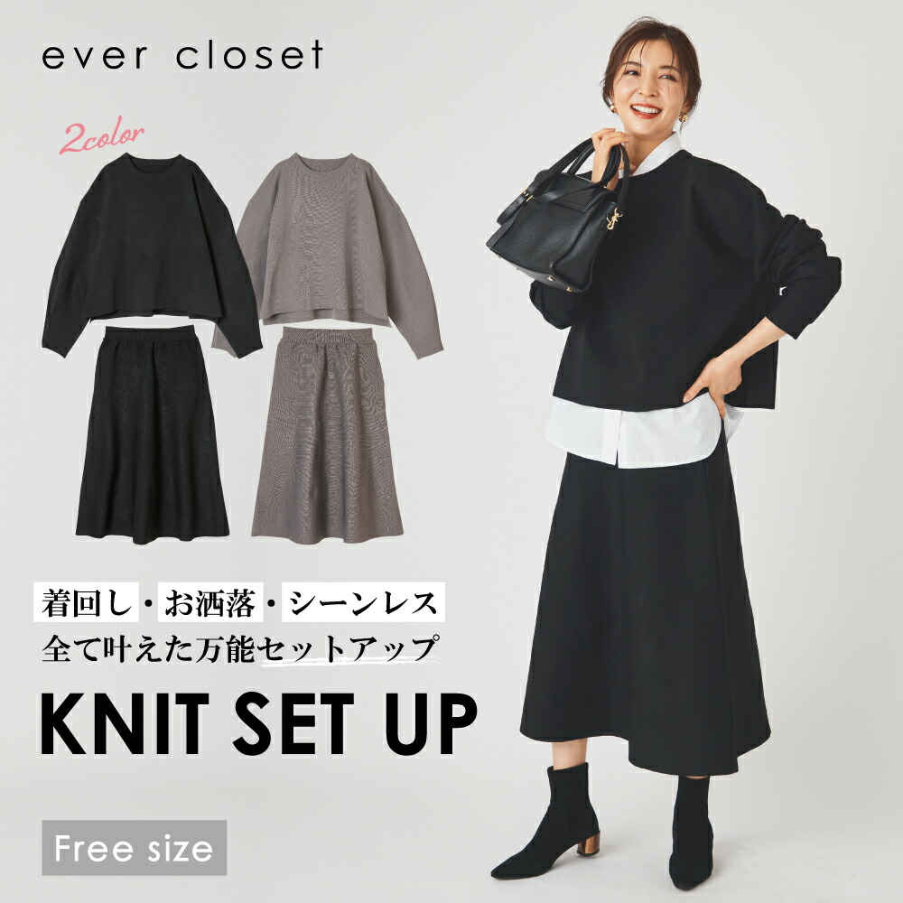 レディースファッション フォーマル ニット セットアップ 長袖 スカート ウエストゴム 上下セット フリーサイズ
