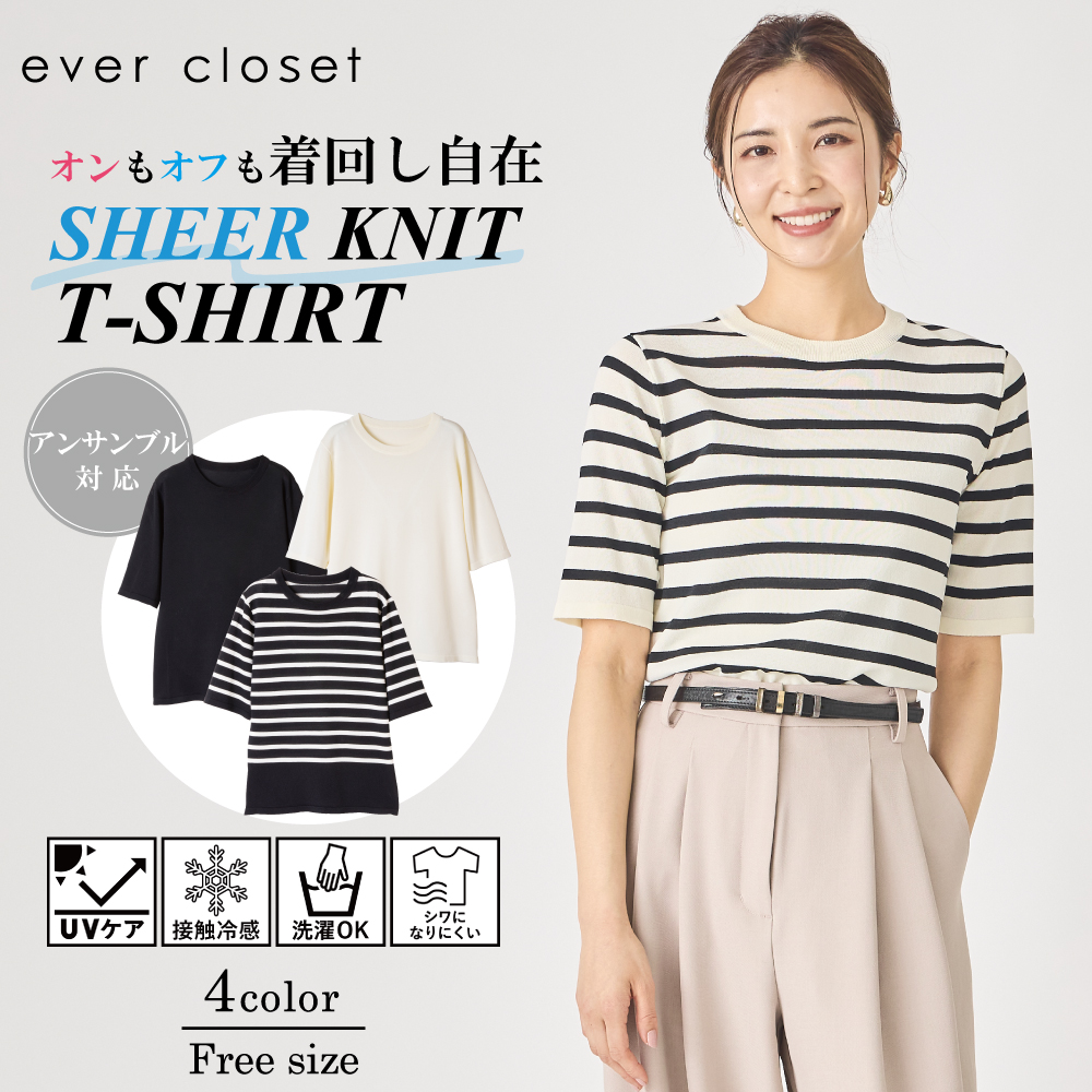 レディースファッション シアー ニット Tシャツ トップス カットソー 半袖 五分袖 仕事 通勤 上品 きれいめ 重ね着 春夏服 フリーサイズ