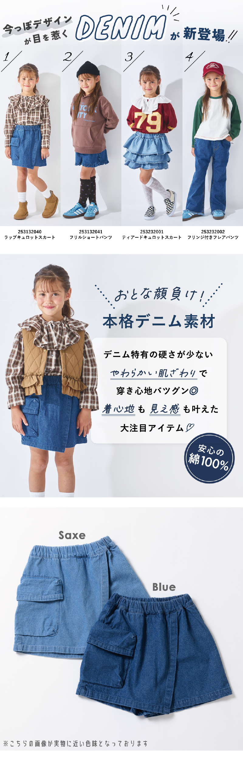 子供服 子ども服 こども服 こどもふく キッズ服 服 ふく ファッション キッズファッション キッズ 子供 子ども こども スクール ジュニア 女の子 女児 ガールズ 女子 女の子服 幼稚園児 幼稚園 保育園児 保育園 小学生 小学校 90cm 100cm 110cm 120cm 130cm 140cm 150cm 青 水色 ブルー サックス 春 春用 春物 春服 夏 夏用 夏物 夏服 SS 通園 通学 普段使い お出かけ 遠足 綿 めん コットン 綿100% コットン100% 綿100 デニム でにむ ボトムス ボトム ズボン ショートパンツ パンツ 短パン 半ズボン キュロット キュロットスカート スカート ポケット ポケット付き おしゃれ お洒落 オシャレ かわいい 可愛い カワイイ かっこいい カッコいい カッコイイ カジュアル プチプラ ぷちぷら ゆったり お揃い 友達 友だち 無地