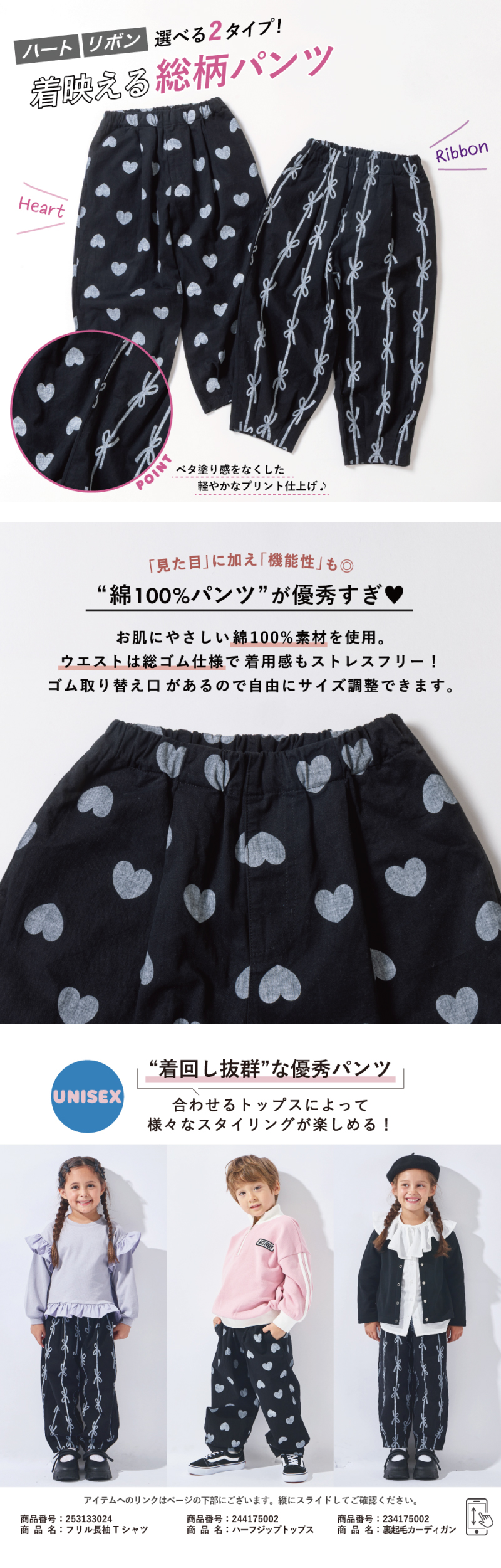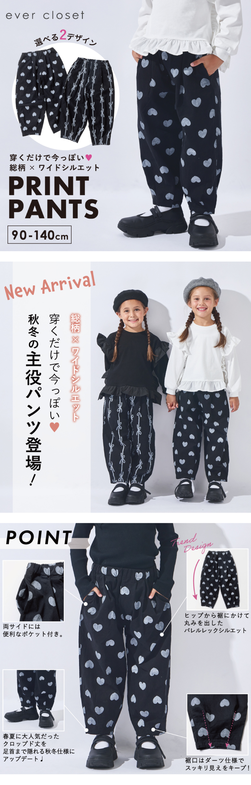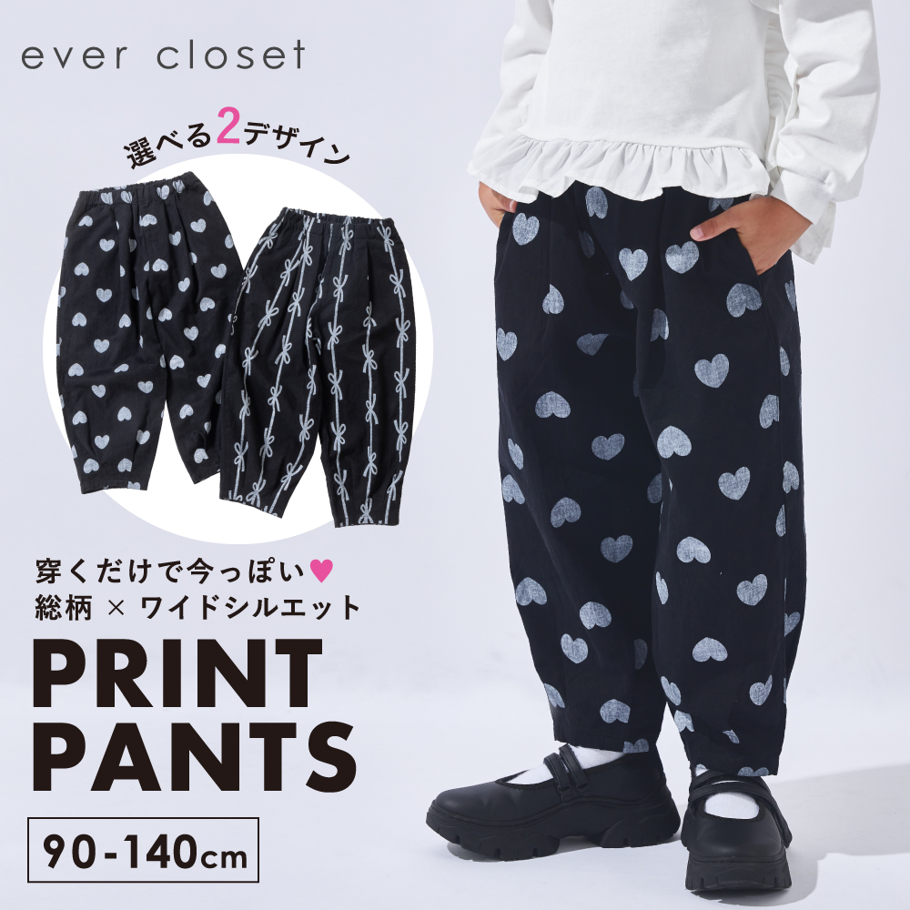 おしゃれ お洒落 オシャレ かわいい 可愛い カワイイ かっこいい カッコいい カッコイイ カジュアル プチプラ ぷちぷら ゆったり お揃い 友達 友だち ワイドシルエット 総柄 プリント ハート リボン ハート柄 リボン柄 パンツ ズボン ボトムス 長ズボン ロングパンツ 楽ちん 楽チン らくらく ストレートパンツ バレルレックパンツ 総柄 黒 ブラック リボン ハート 90 100 110 120 130 140 子供 子ども こども スクール ジュニア ベビー べびー 幼児 新生児 キッズ ベビー ファッション 男の子 男児 ボーイズ 男子 女の子 女児 ガールズ 女子 女の子服 ユニセックス ゆにせっくす 幼稚園児 幼稚園 保育園児 保育園 小学生 小学校 綿 めん コットン 綿100% 通園通学 入園入学 普段使い お出かけ 遠足 旅行 帰省 修学旅行 プレゼント 誕生日 たんじょうび evercloset エバクロ