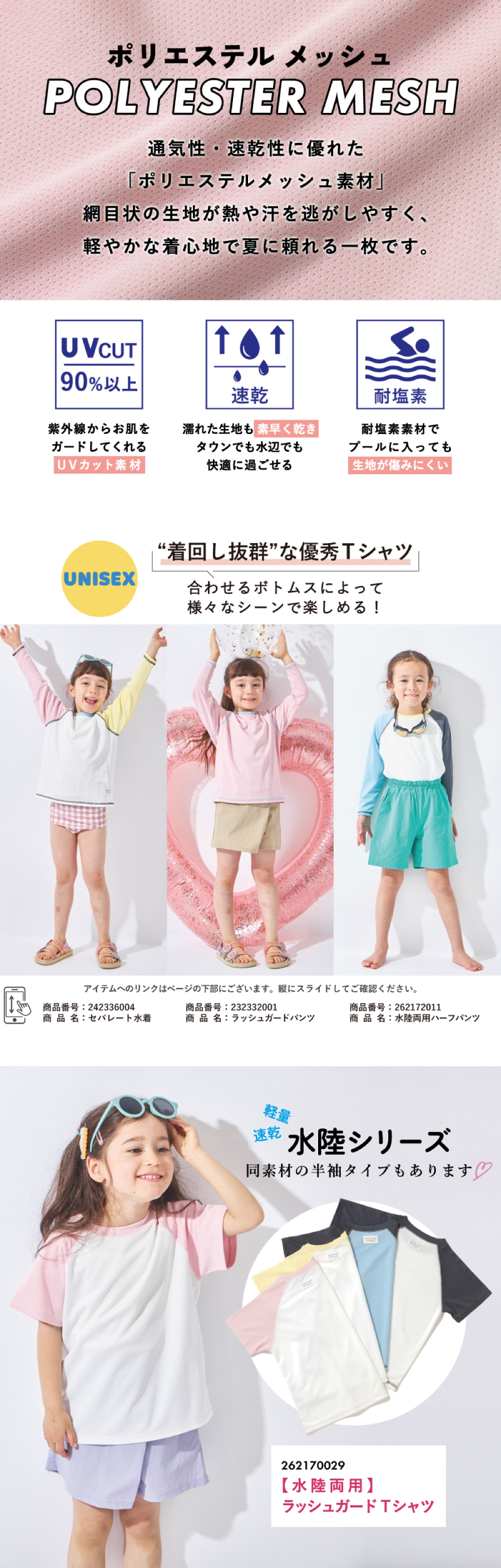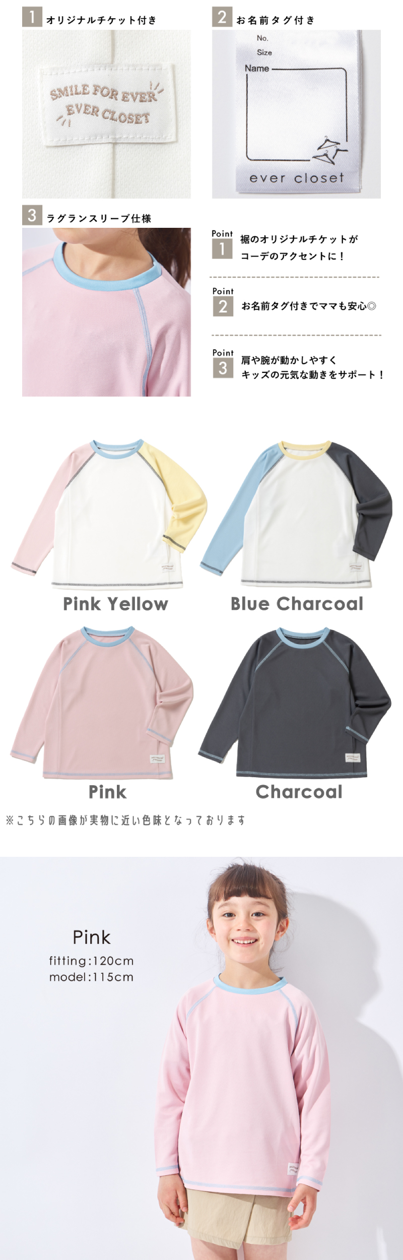 UVカット率90%以上 速乾 ストレッチ 耐塩素 通気性 水陸両用 通園通学 入園入学 普段使い お出かけ 遠足 旅行 帰省 修学旅行 プレゼント 誕生日 日焼け防止 水泳 プール 海 川 水遊び 外遊び ポリエステル トップス tシャツ 長袖 ロンT ながそで おしゃれ お洒落 オシャレ かわいい 可愛い カワイイ カジュアル プチプラ ぷちぷら ゆったり 涼しい お揃い 友達 友だち ラッシュガード 春 夏 26SS 子供服 こどもふく ベビー キッズ 男の子 男子 女の子 ガールズ ユニセックス ゆにせっくす 幼稚園 保育園 小学生 小学校 ファッション 90 100 110 120 130 140 ピンク ブルー 青 イエロー チャコール 茶 黒 配色 evercloset ever closet エバークローゼット エバクロ えばーくろーぜっと えばくろ